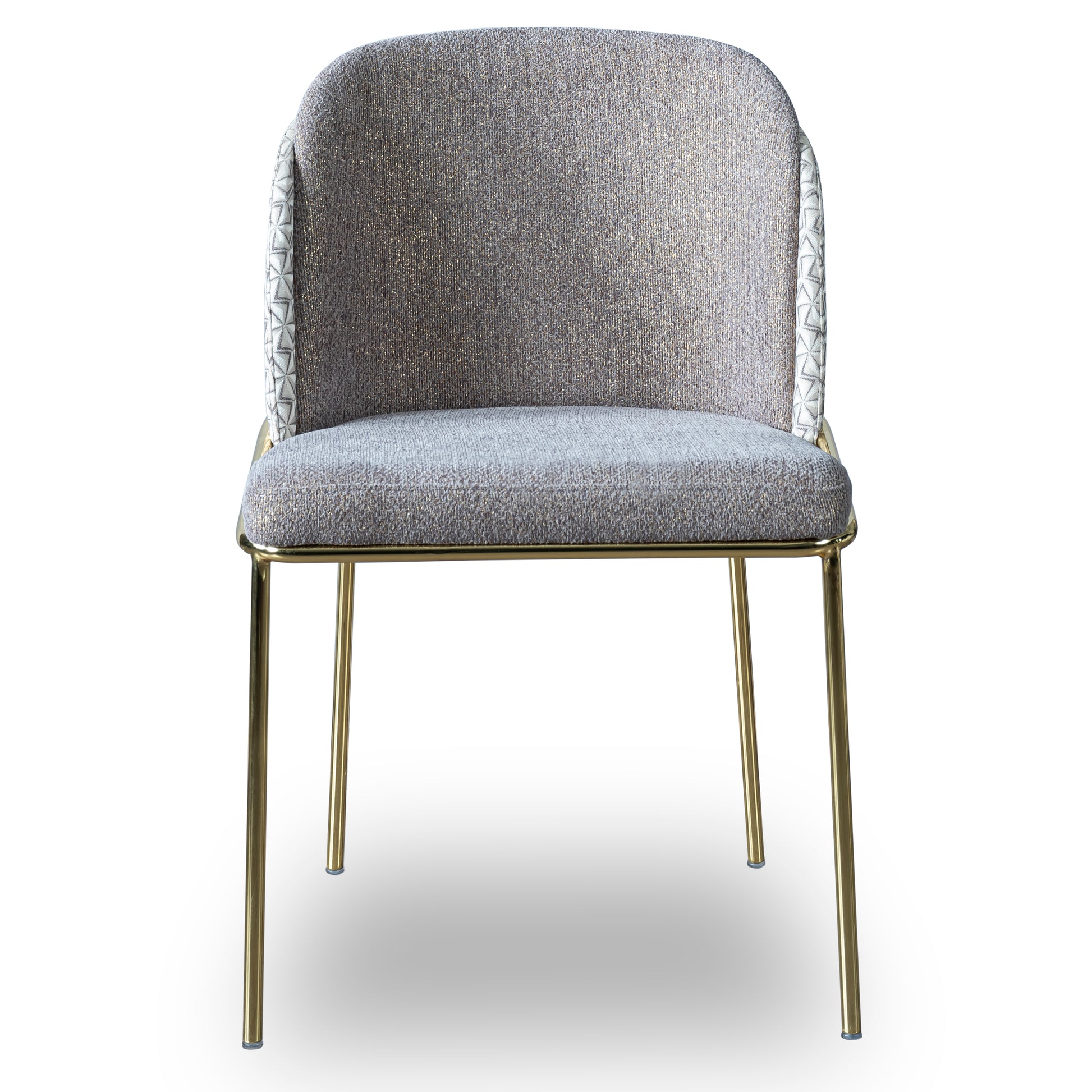 A gorgeous dining table with high-quality 22 mm MDF w 4 mm marble design and an elegant dining chair made with metal and fabrics, complete the set and gives an