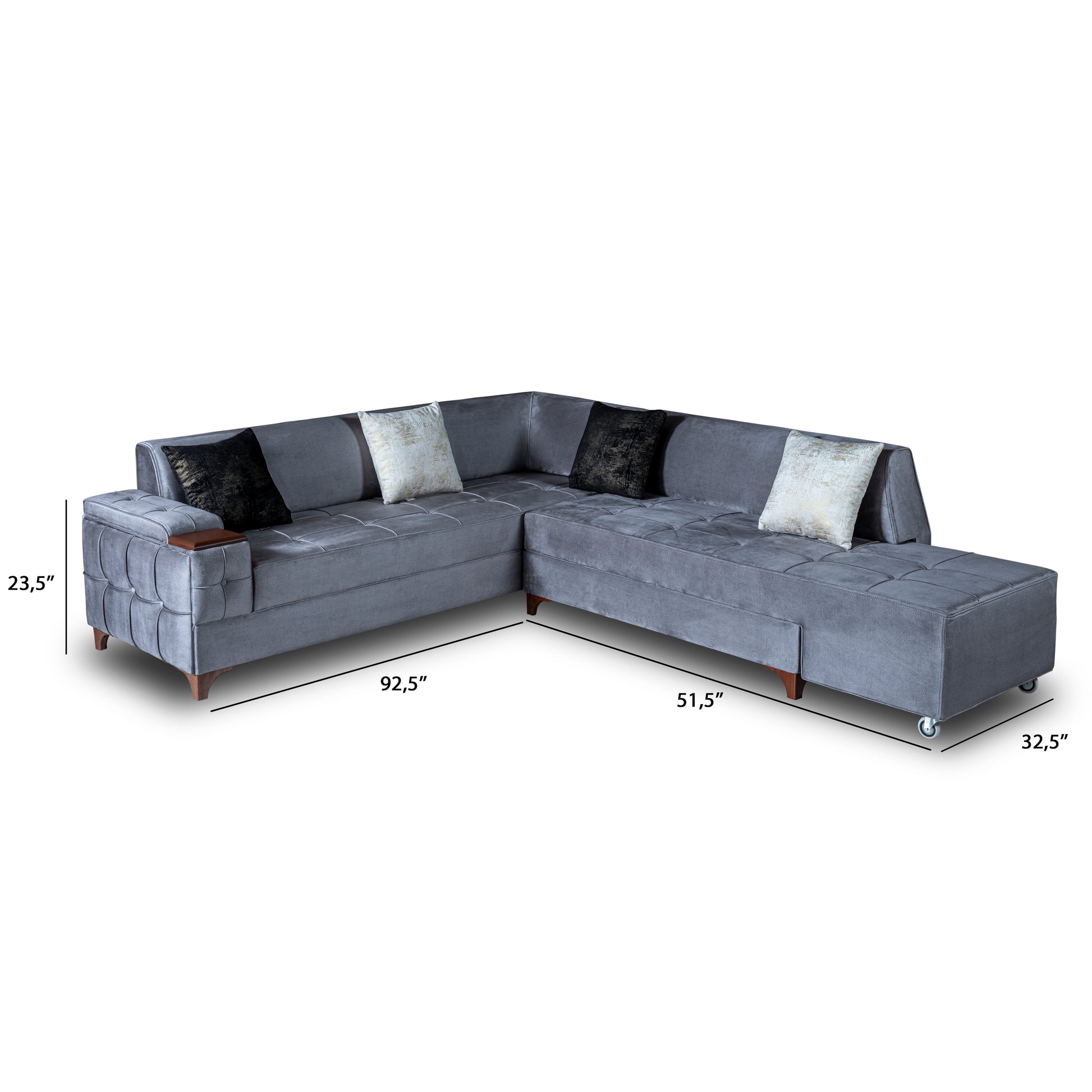 A trending design for relaxation, this living room furniture is a versatile sectional sofa. Enjoy lounging in its cushion-tufted seating and high-quality wooden frame pull-over bed storage chaise. Roller legs for the chaise make it easy to convert into a bed, which allows you to fully stretch out and take a breather from the long day. Perfect for unexpected guests, this sectional is necessary in every home! They are made of special Zen fabric, and they are waterproof.